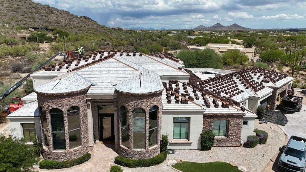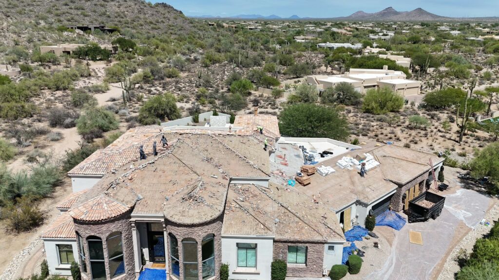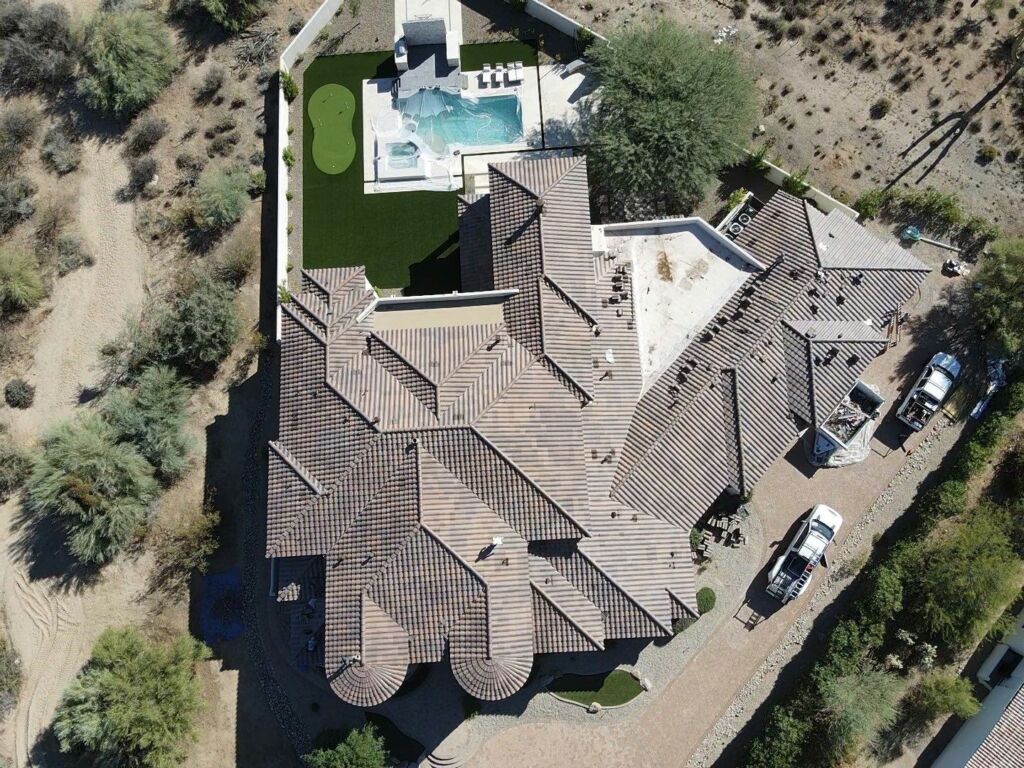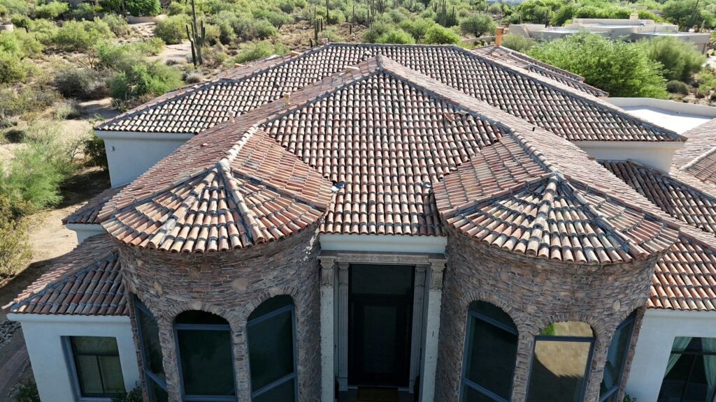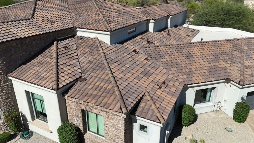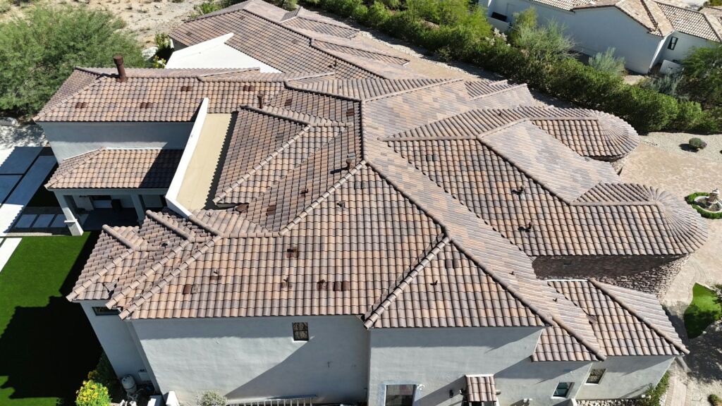 Our team removed the existing sand cast clay tile roof and installed a durable concrete tile system with a 30-year Westlake Tile Seal underlayment and all new roofing components, along with an acrylic coating on the foam roof for added protection.